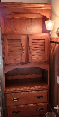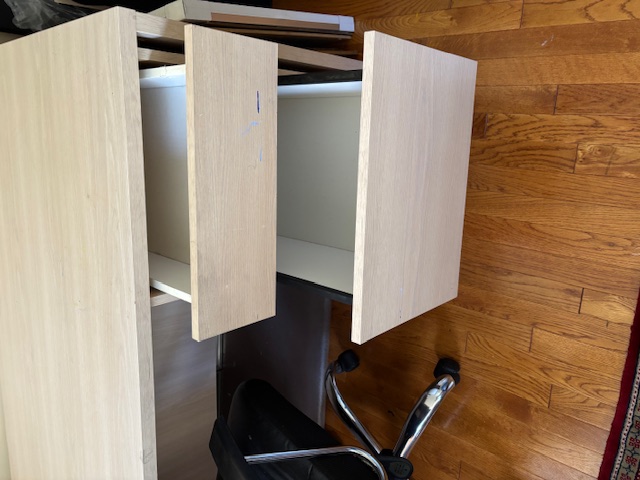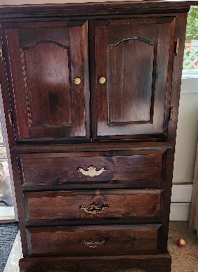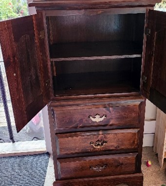 Hello, I have two wood cabinets, that are in good condition, to give away. Dark cabinet is 18 inches deep by 33.5 wide by 53 high. Maple cabinet is 17 inches deep by 30 wide by 78 high and is two pieces.